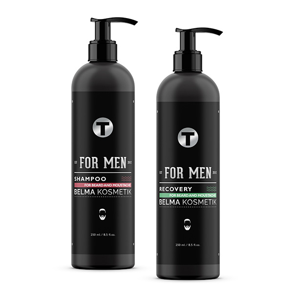 Beard & Hair Shampoo: es uno de los productos T-Men de Belma Kosmetik caballeros de función dual, diseñado para cuidar y respetar el balance natural de la piel. La acción dual de este Champú para barba y cabello establece un perfecto equilibrio y respeto en la piel. Sus agentes enzimáticos y el ácido tánico hidratan eliminan el aspecto encrespado y rígido en la barba.