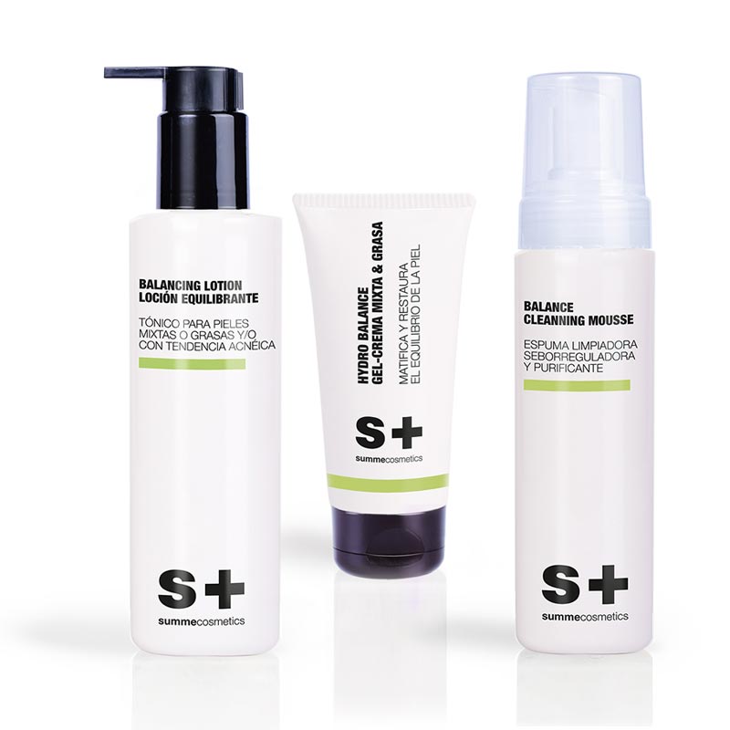 LEER MÁS + Balancing Lotion Summecosmetics: es una loción purificante facial de efecto astringente y también matizante para pieles mixtas y grasas. De suave acción exfoliante con efecto queratopástico. Además ofrece una extraordinaria renovación de la piel, que se manifiesta por una gran mejoría en la topografía general cutánea. En conclusión ofrece el cuidado diario para una piel más fina, sedosa y aterciopelada. Pure Regulator Serum Gel: es un normalizador y regulador de la producción del sebo. La combinación sinérgica de sus ingredientes junto con tea tree oil encapsulado en ciclodextrinas, produce una acción cicatrizante, antiséptica, antiinflamatoria y también antiseborréica, actuando sobre los principales signos de las pieles grasas con tendencia acnéica. Piel fresca, satinada, sin brillos y libre de poros y puntos negros. Hydro Balance Gel-Cream: es un gel-Crema de tratamiento facial para jóvenes de hasta 30 años de edad, cuya fórmula reguladora y también equilibrante, estimula y restablece los mecanismos de auto-hidratación de la piel, restaurando su barrera lipídica natural. Del mismo modo reduce el exceso de grasa y matifica la apariencia de la piel. En otras palabra es ideal para pieles mixtas y/o grasas con tendencia acnéica. Balancing Lotion Summecosmetics: Pure Regulator Serum Gel: NOTA: Para pieles con acné activo, evite masajear profundamente. En estos casos, se recomienda que el producto se aplique con equipo, por ejemplo, [MS] Mesolab (mesoterapia) o sistema [RF] LAB (radiofrecuencia). Hydro Balance Gel-Cream: Balancing Lotion Summecosmetics: Pure Regulator Serum Gel: Hydro Balance Gel-Cream: Ingredientes principales: Lista completa de ingredientes: Balancing Lotion Summecosmetics: Aqua, Propanediol, Propylene Glycol, Alcohol Denat, Iris Florentina Root Extract, Zinc Sulfate, Glycolic Acid, Lactic Acid, Citric Acid, Tartaric Acid, Retinyl Palmitate, Peg-40 Hydrogenated Castor Oil, Benzophenone-4, Sodium Hydroxide, Ci 19140, Ci 42051, Phenoxyethanol, Ethylhexylglycerin, Parfum, Linalool, Limonene, Butylphenyl Methylpropional. Pure Regulator Serum Gel: Aqua, Glycerin, Propylene Glycol, Propanediol, Dimethicone, Alcohol Denat, Iris Florentina Root Extract, Melaleuca Alternifolia Leaf Oil, Retinyl Palmitate, Zinc Sulfate, Triethanolamine, Carbomer, Polysorbate 20, Tetrasodium Glutamate Diacetate, Benzophenone-4, Ci 10020, Phenoxyethanol, Ethylhexylglycerin. Hydro Balance Gel-Cream: Aqua, Dicaprylyl Ether, Aluminum Starch Octenylsuccinate, Glycerin, Cyclopentasiloxane, Alcohol Denat, Iris Florentina Root Extract, Citric Acid, Zinc Sulfate, Retinyl Palmitate, Carbomer, Propanediol, Tetrasodium Glutamate Diacetate, Caprylic/Capric Triglyceride, Tocopherol, Tocopheryl Acetate, Propyl Gallate, Sodium Hydroxide, Phenoxyethanol, Ethylhexylglycerin, Parfum.